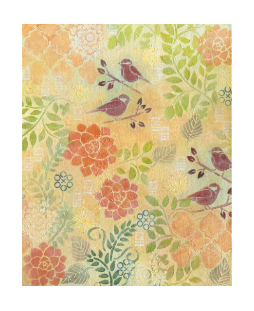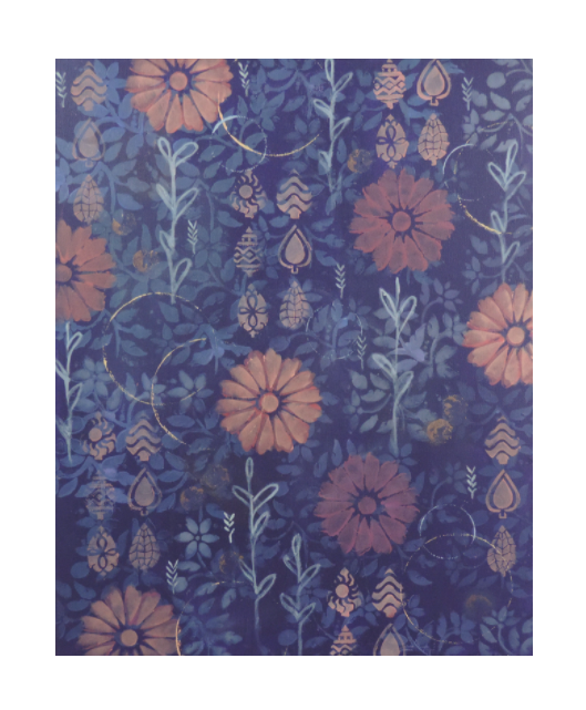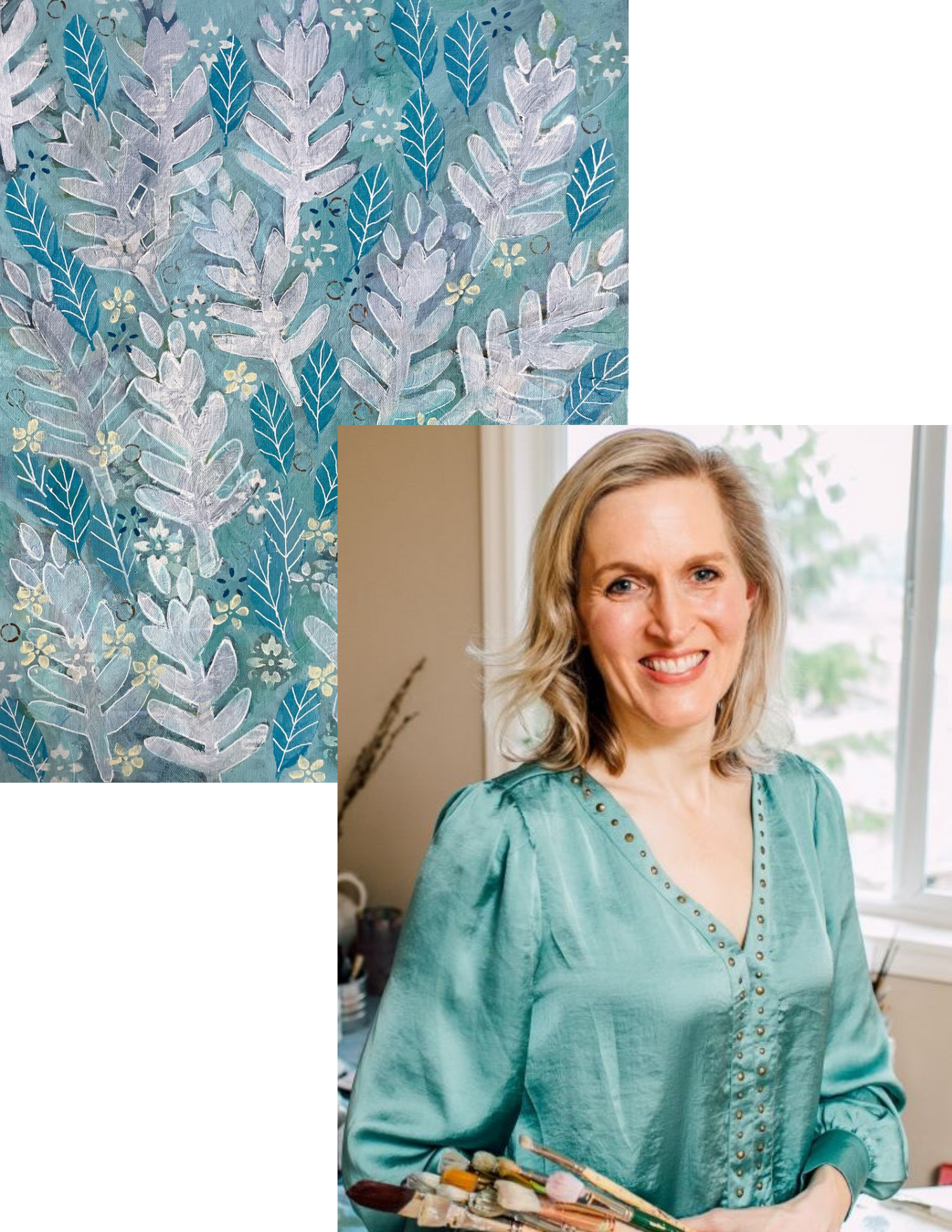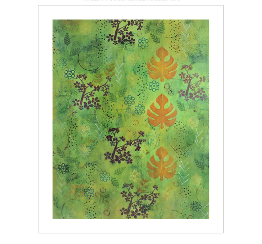 The patterns in my paintings often show a sense of movement and seasonal flow. Flowers, leaf prints, and circular shapes remind us of our connection to the earth and one another.