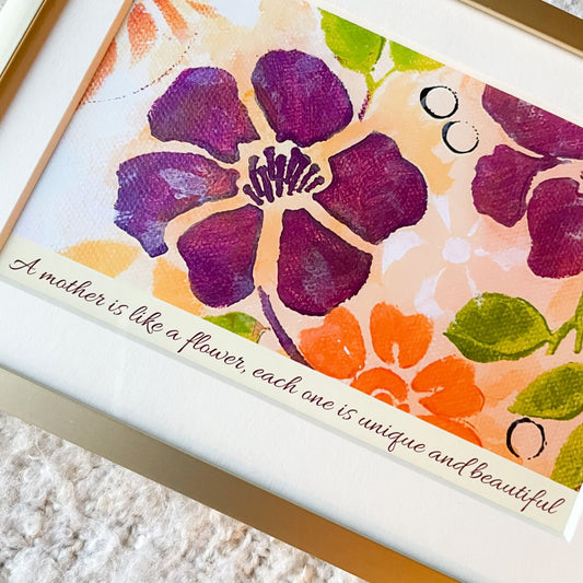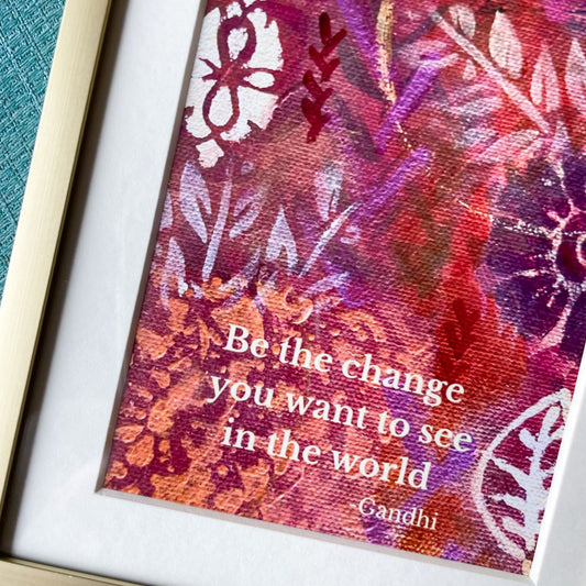 What is a Framed Mini? These are detail images of my original acrylic paintings, paired with an inspirational quote and placed in an elegant gold frame.