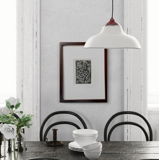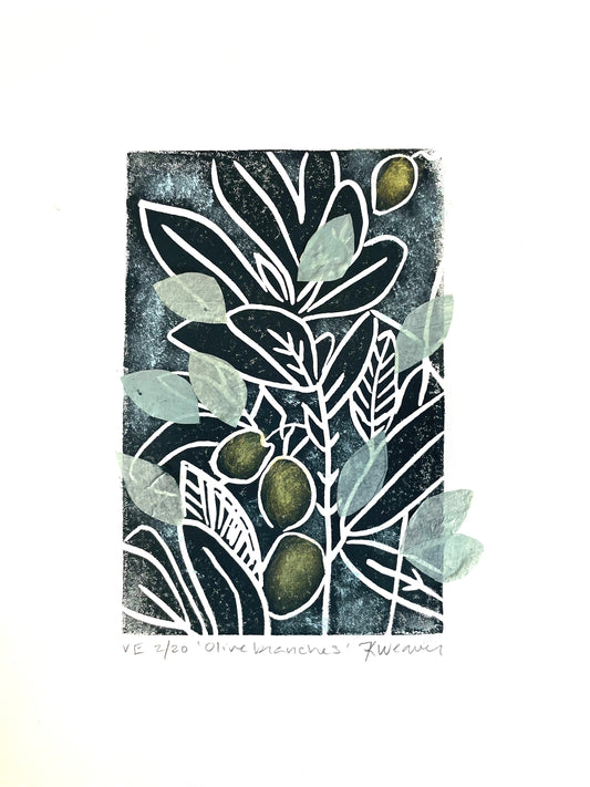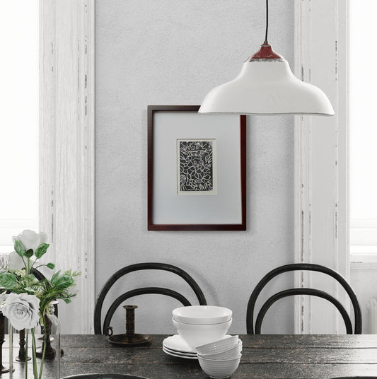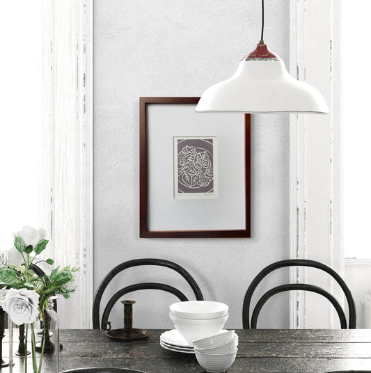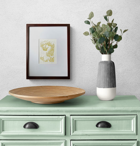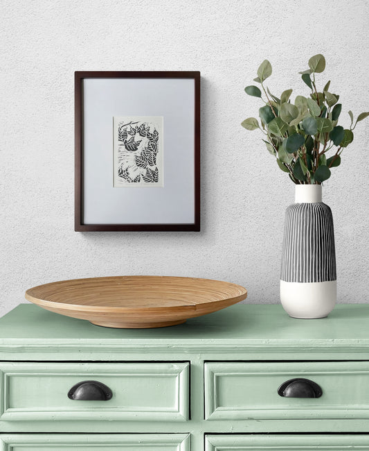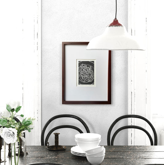 This artwork is hand carved from a linocut block. Each print is an original and comes in black and white or a specific color.