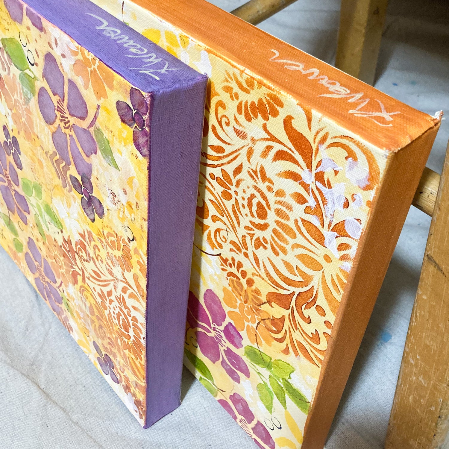 I often start one and as I’m creating, I decide a second one would be a nice companion. The funny thing is, the second one often goes in a different direction. It starts with the same shapes and colors, but then develops its own personality.
