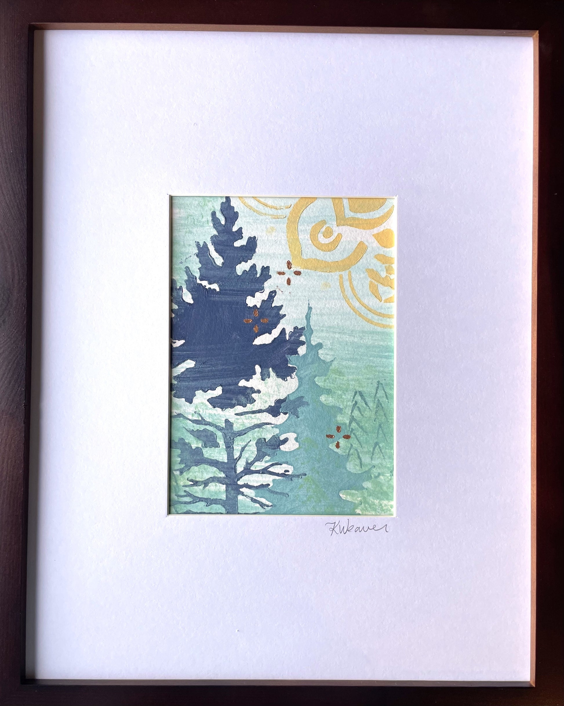 This is an original acrylic painting on watercolor paper. It comes in a frame that can stand upright or hang on a wall.