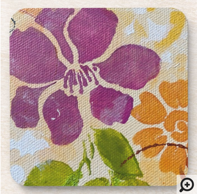 Entertain artfully with these custom-made floral coasters. They come in a set of four with a cork backing and two different designs in each set!