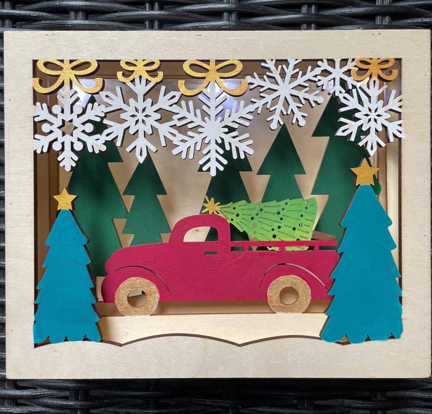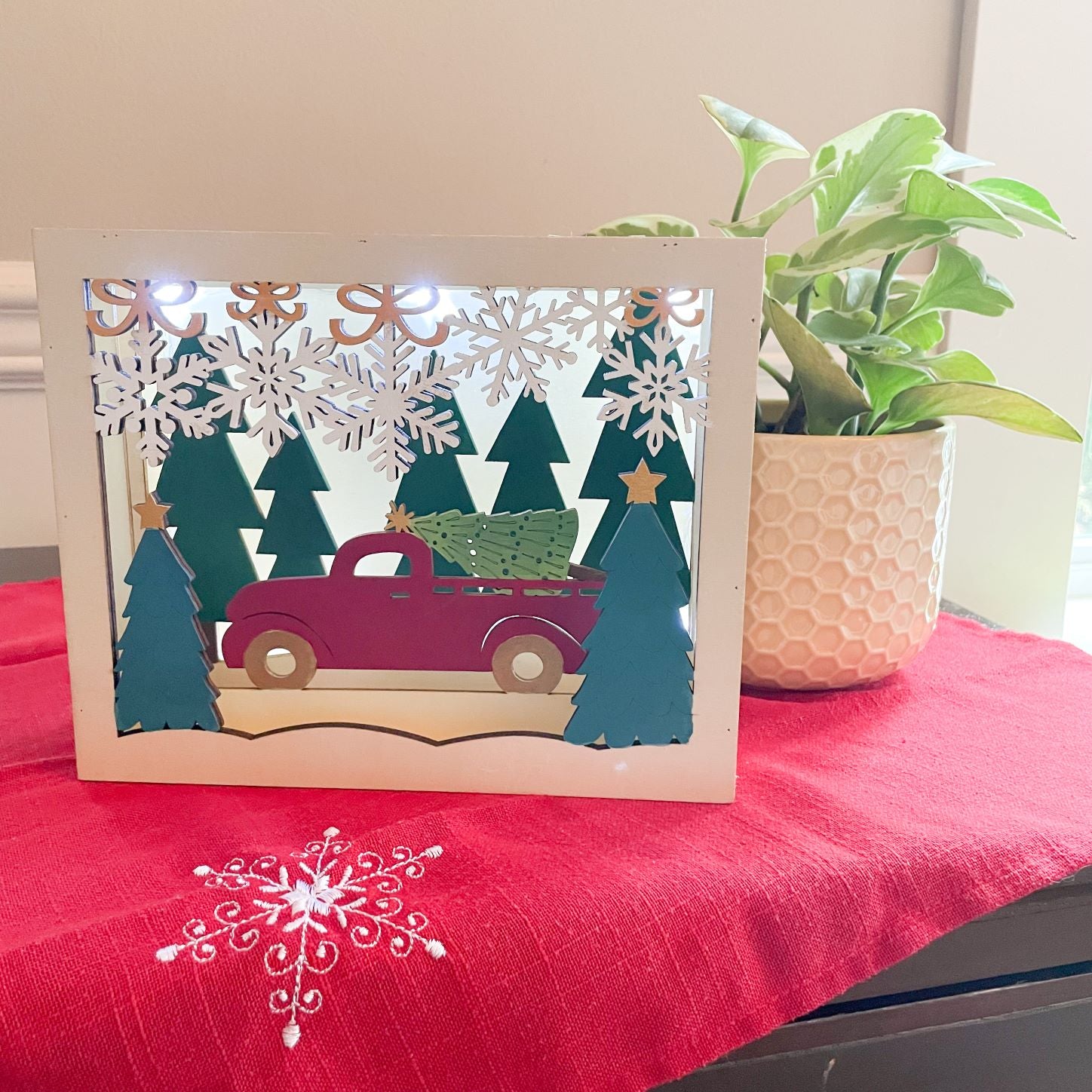 Holiday Light Box - Red Truck in the Woods