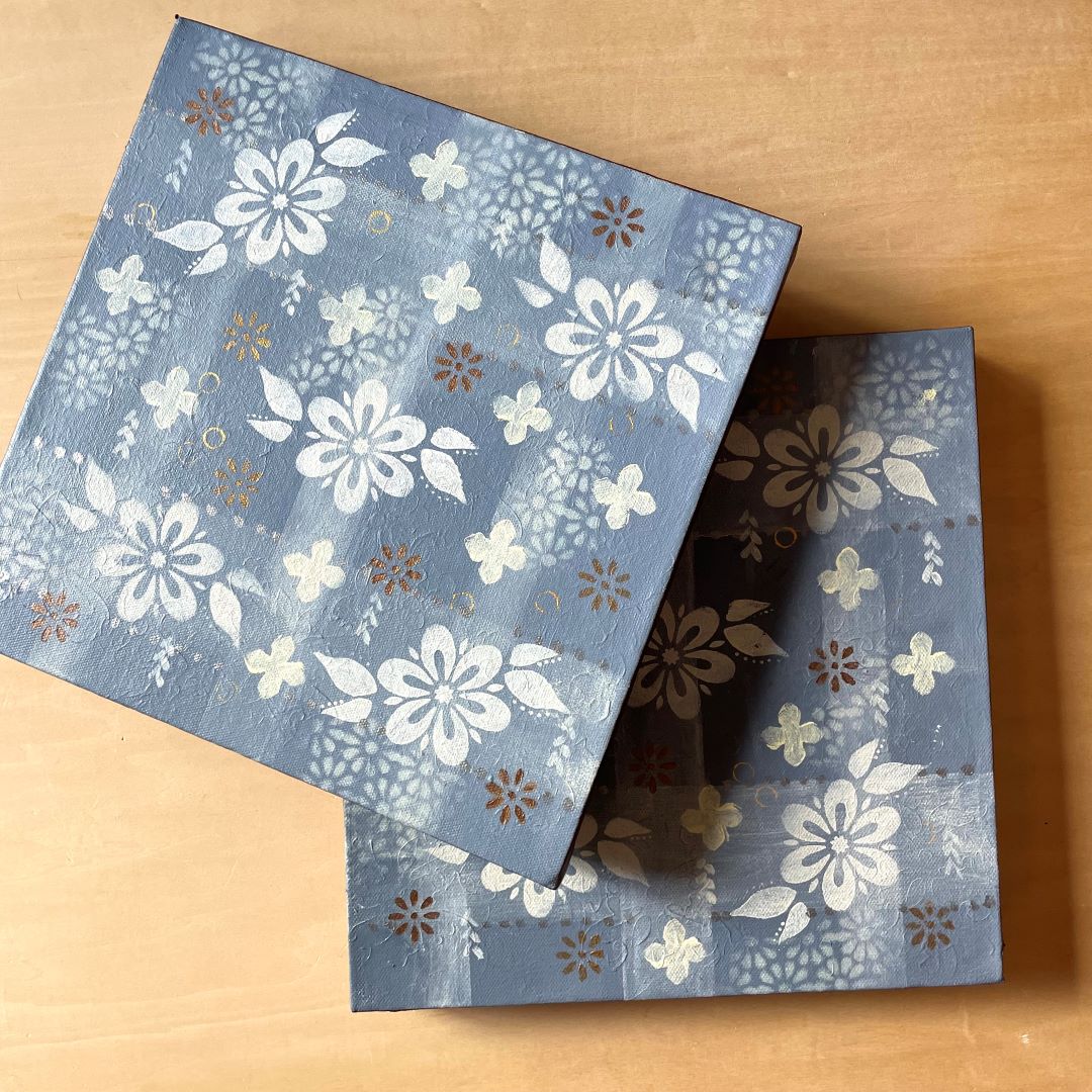 - Two 12” x 12” Acrylic paintings on canvas