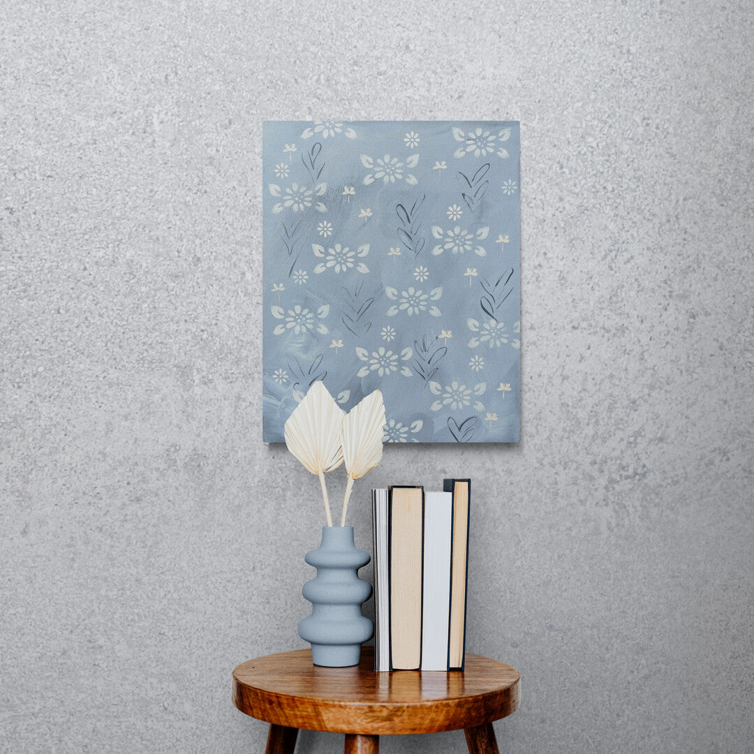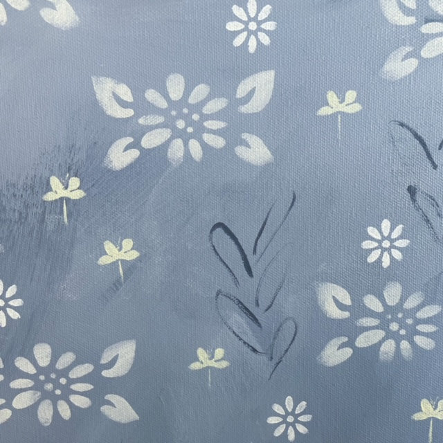 Enjoy this soft grey painting with dabbles of light and flowers.