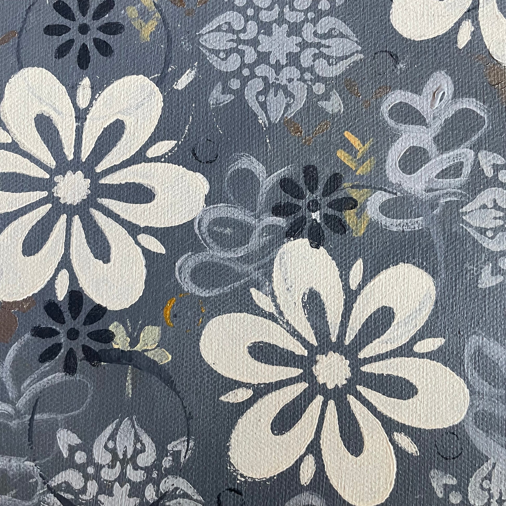 Who says that grey is boring? Dark grey with bright cream and blue will add some pizazz to your walls.