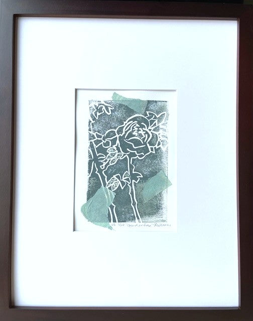 This linocut was inspired by a late blooming rose in my backyard. As summer dissipates this single rose offers a bit of beauty as we transition into the next season.