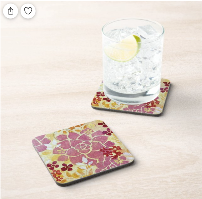 Entertain artfully with these custom-made floral coasters. They come with a cork backing and two different designs in each set!