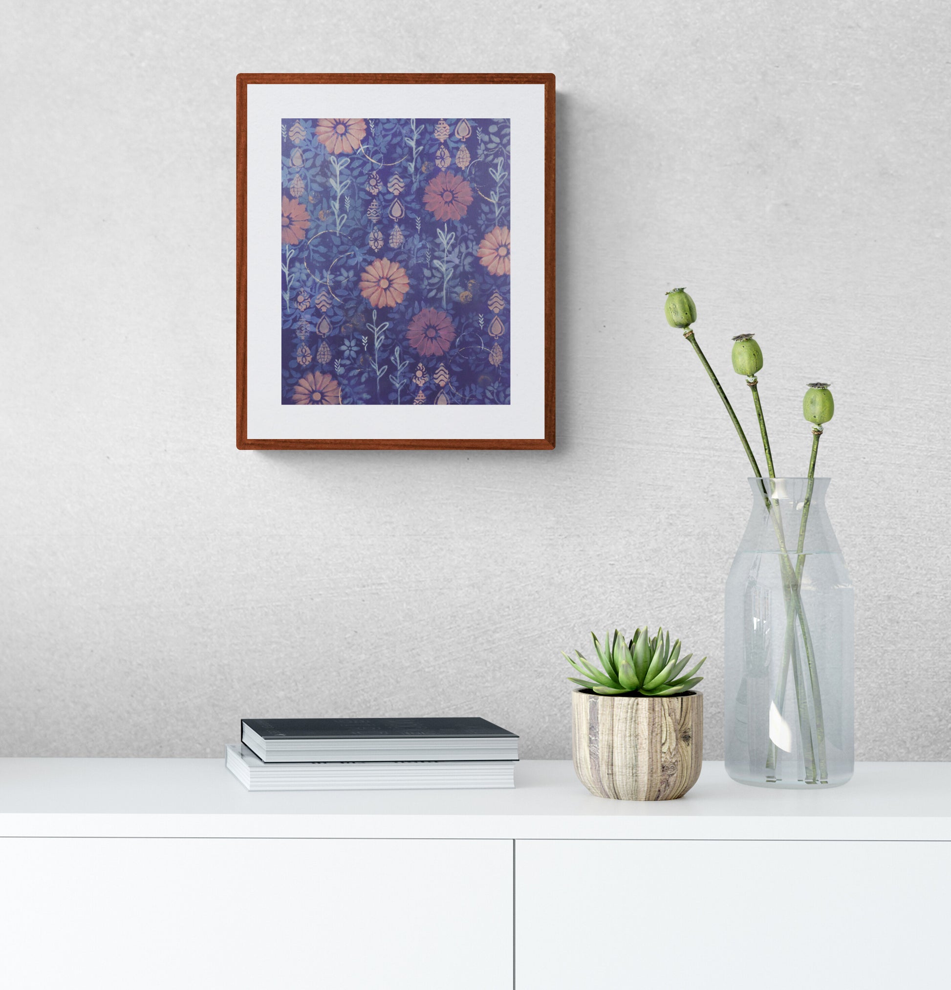 Who says dark is drab? Rose colored flowers on a plum backdrop gives you the feeling it is "raining flowers!"